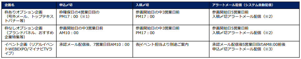 ●一部ナビ企画(オプション等)およびイベント企画についてのアラートメールを配信します!